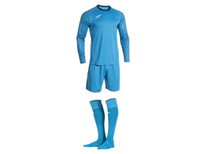 Kit portiere Joma Zamora X composto da maglia, pantaloncino e calzettone. Turchese
