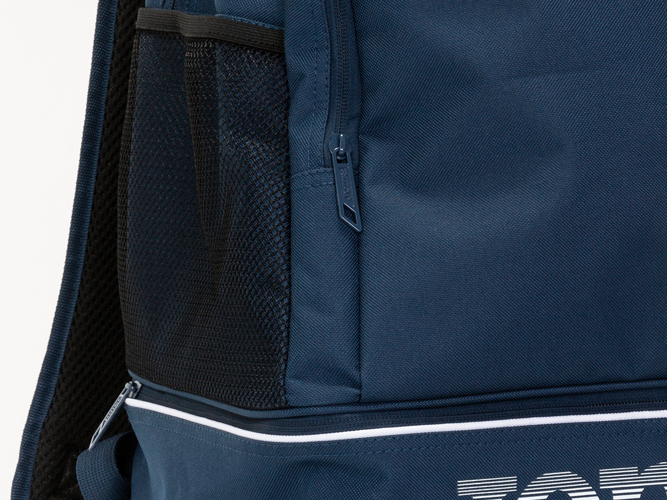 Zaino con scomparto interno, tasca frontale e loghi serigrafati.